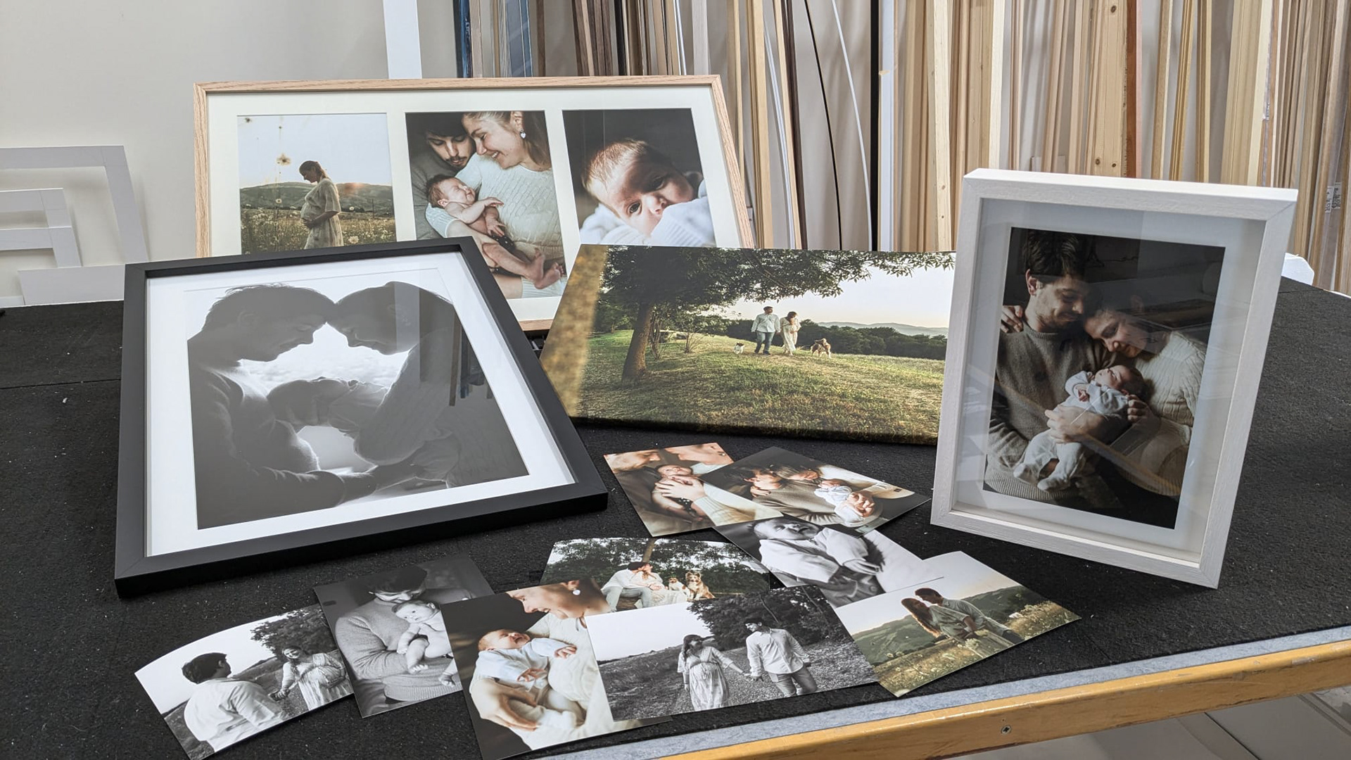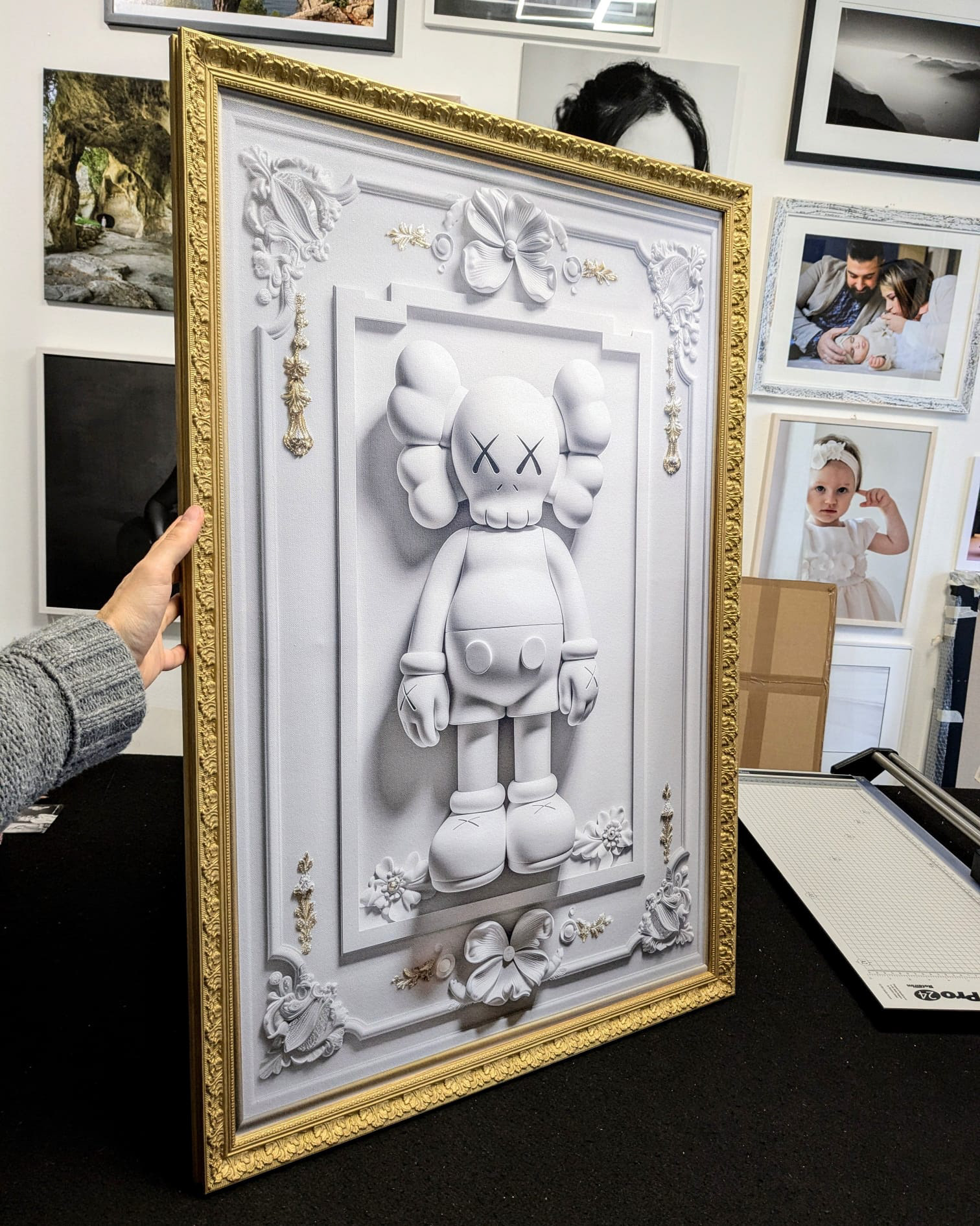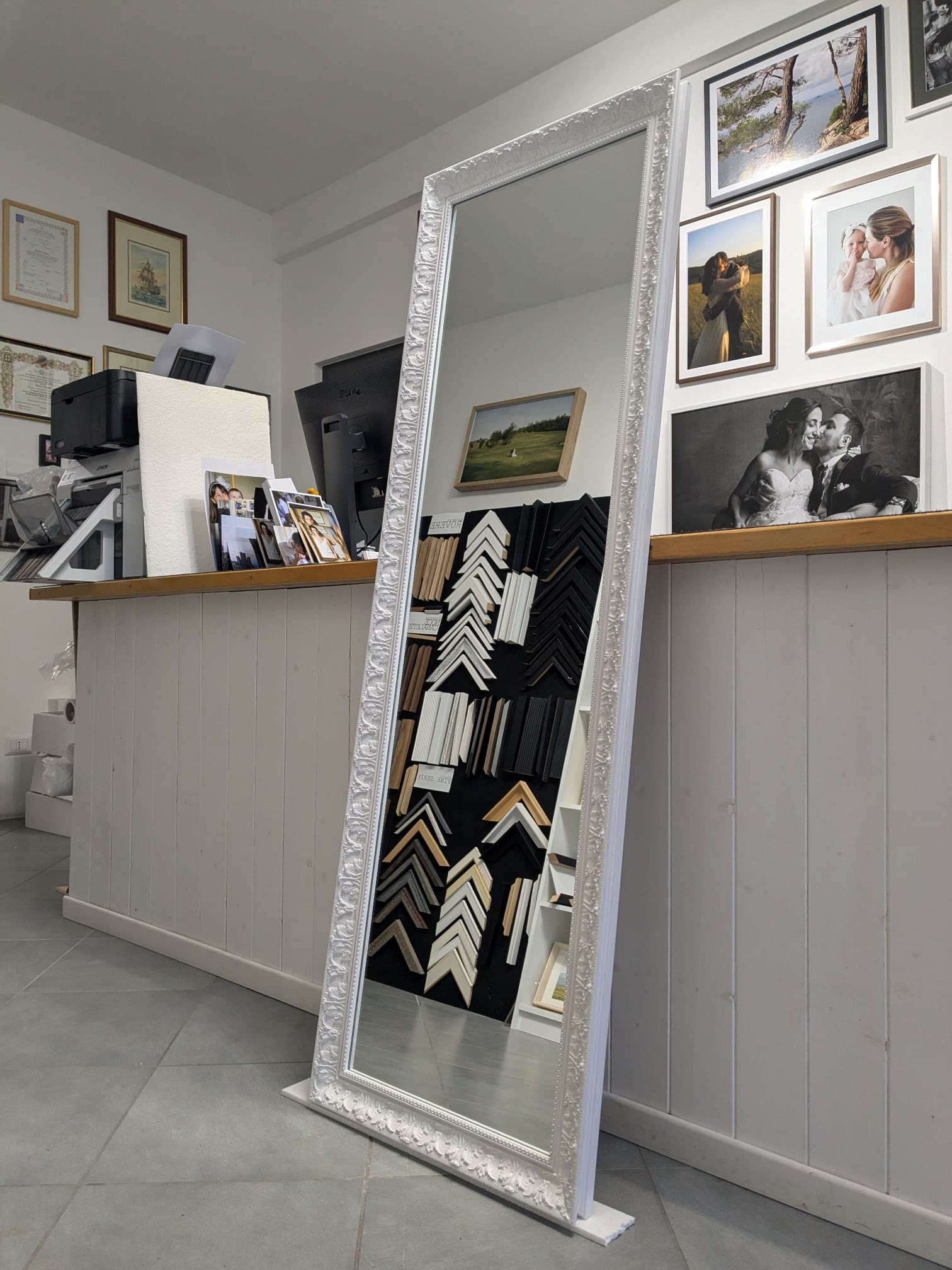 Si effettuano stampe su tela di alta qualità e intelaiature. Il prodotto viene interamente creato presso il laboratorio.